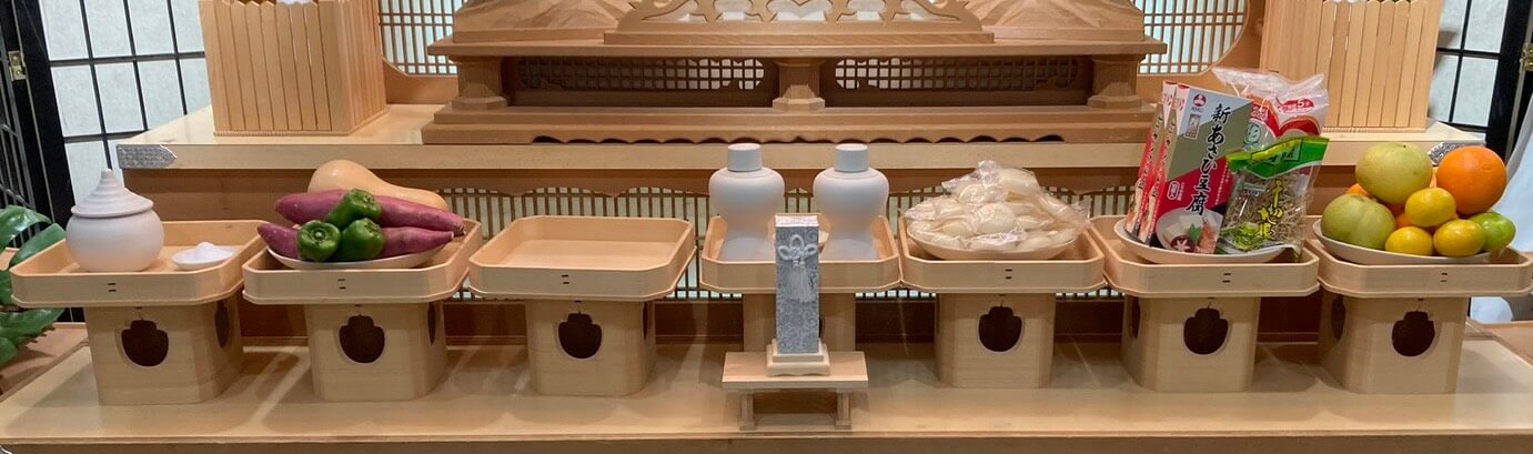 仏式では祭壇にお花を飾ることが主流で、神式では神様に「神饌物(しんせんもの)」と呼ばれるお供え物をします。
